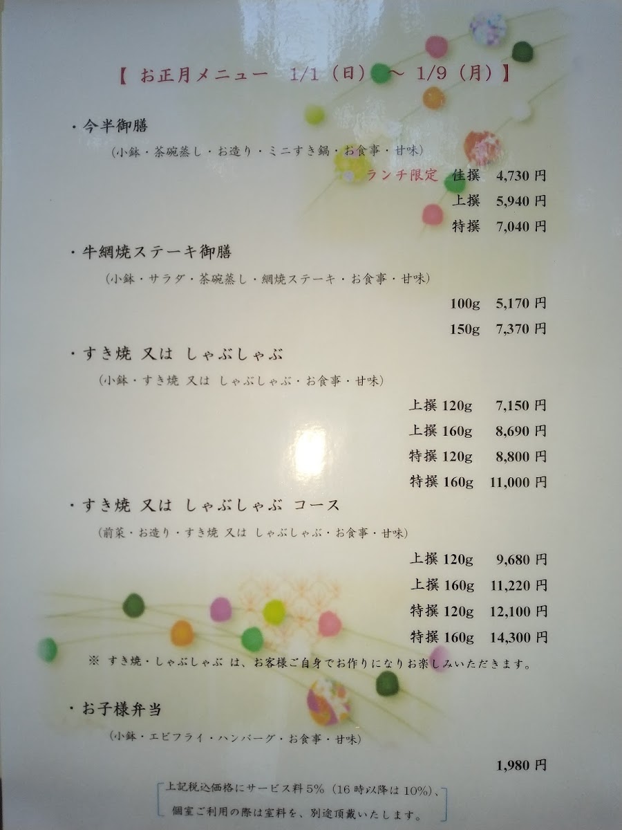 The menu features tantalizing options like the 彩膳【赤身】, offering an exquisite array of dishes including sashimi, tempura, and a mini sukiyaki hot pot for JP¥7,480. For steak lovers, the 牛網焼ステーキ御膳 (grilled steak set) showcases premium beef, served with choice of 100g or 150g portions, starting from JP¥5,610. Each meal is meticulously crafted, ensuring a balance of taste and presentation.